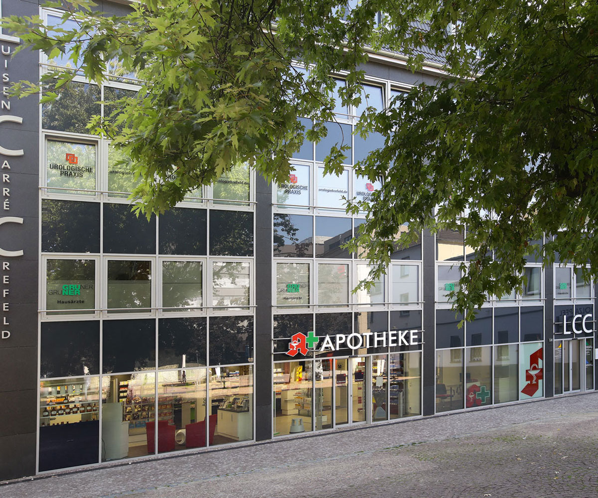 Die geschulten Fachkräfte unserer Apotheke im LuisenCarréCrefeld beraten Sie persönlich und professionell bei Fragen zu Ihrer Gesundheit. Bei uns profitieren Sie von der direkten Verfügbarkeit benötigter Medikamente und umfangreichen Serviceleistungen vor Ort.